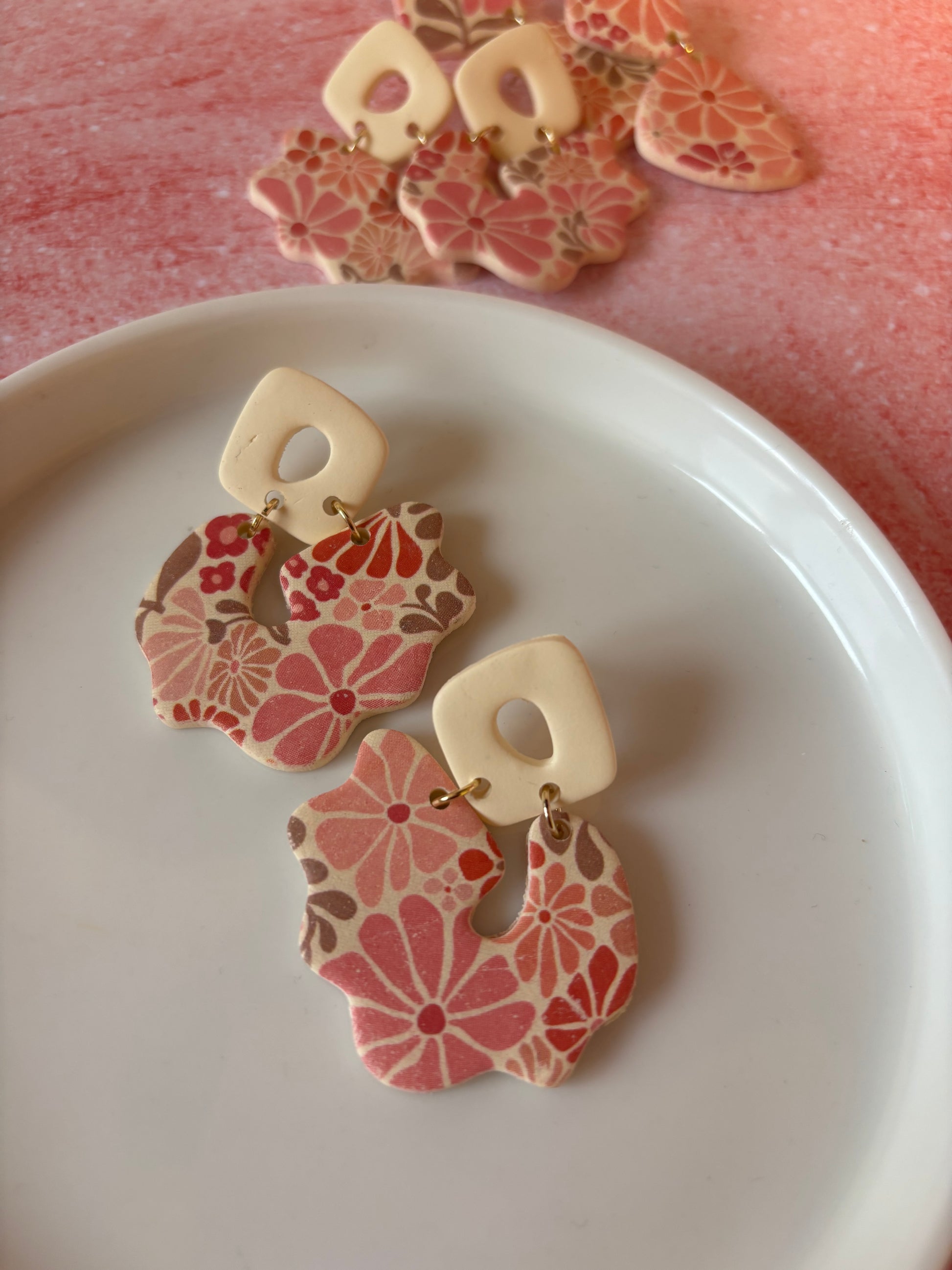 Boucles d’oreilles fleurs bohèmes rose en argile polymère – Fait main France | Les trésors de Cia
