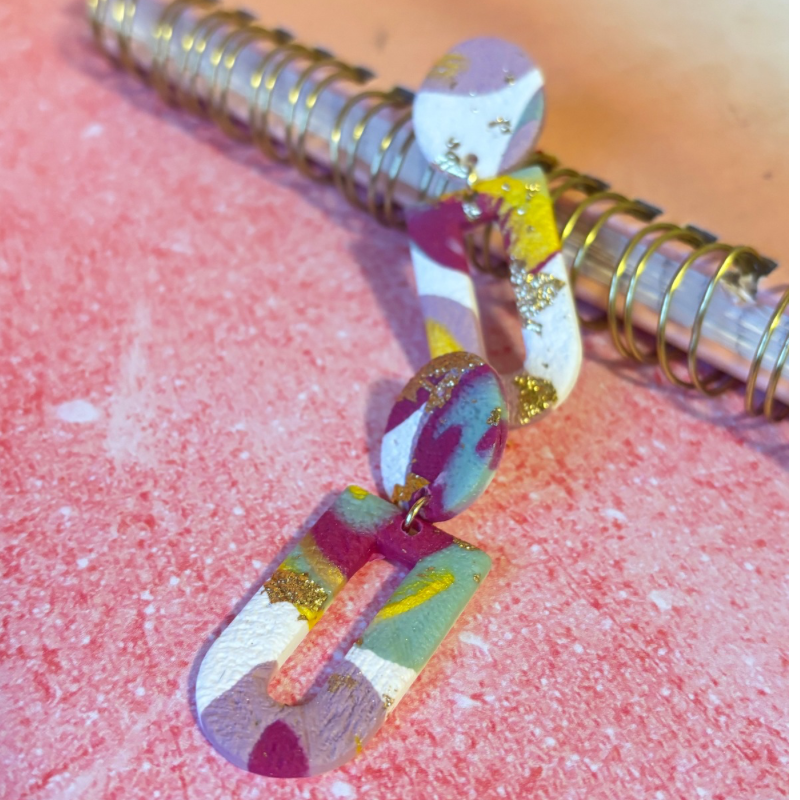 Laisse parler ta créativité avec ces boucles d’oreilles artisanales multicolores, au design graphique ajouré, entièrement façonnées à la main en argile polymère 🇫🇷