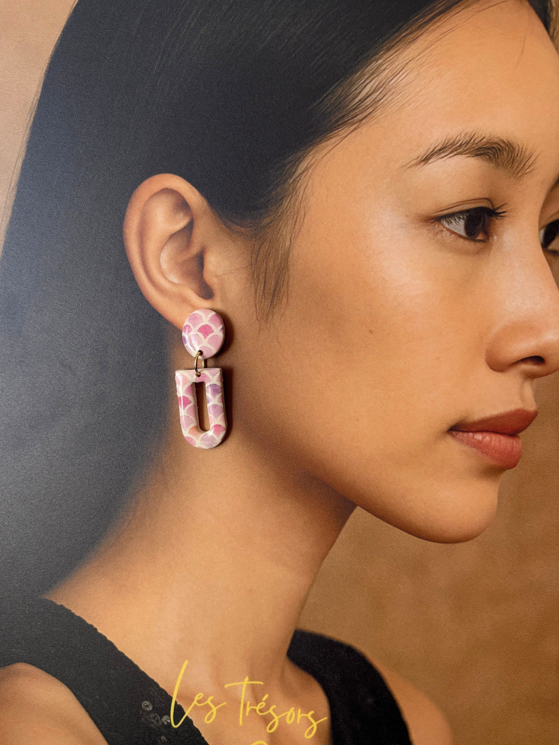 Ces boucles d’oreilles sirène roses aux formes rectangulaires apportent du caractère tout en restant délicates.